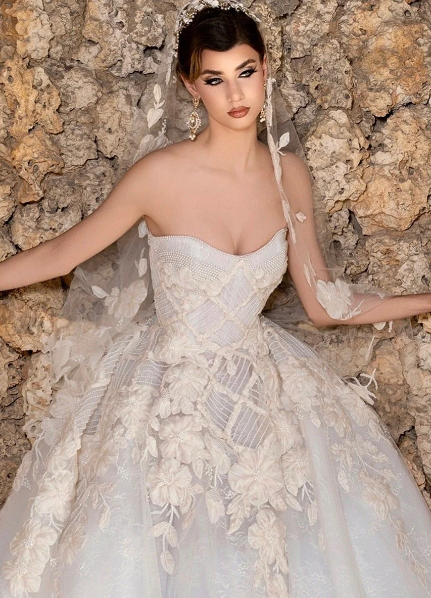 incorporating intricate embroidery, delicate hand-threading, and couture-level craftsmanship. His latest work, The Porcelain 2026 Collection, features 22 meticulously hand-beaded creations that embody both modern elegance and heirloom quality.
